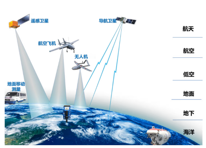 時(shí)空信息的落地,靠的是一套覆蓋“數(shù)據(jù)獲取-處理-應(yīng)用”的完整技術(shù)體系,核心是“天-空-地-海”協(xié)同: